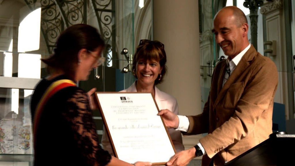 Le certificat officiel d’inscription de l’UNESCO leur a été remis par la Ministre wallonne du Patrimoine et du Tourisme ainsi que le Président de la Commission belge francophone et germanophone pour l’UNESCO.
