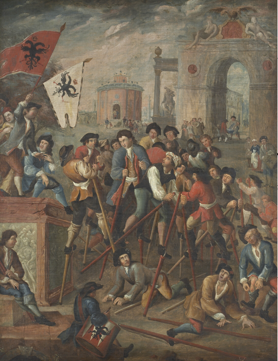 Au cours de leur histoire, les joutes sur échasses se produisirent sous les yeux de plusieurs personnages célèbres, tels que Ferdinand Ier de Habsbourg (1514), Charles Quint (1515 et 1530), Philippe II d’Espagne (1549), Louis XIV (1693), le Tsar de Russie Pierre le Grand (1717). Elles acquirent de ce fait une certaine renommée à travers tous les Pays-Bas, mais également à l’international. Les combats qui se déroulaient lors des carnavals pouvaient recenser jusqu’à 1500 à 2500 jouteurs.